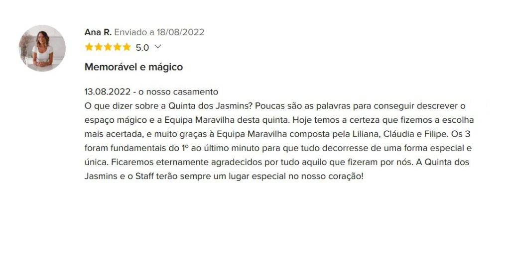 A Quinta dos Jasmins tem ao seu dispor uma equipa de profissionais dedicados, preparados para cuidar de cada aspeto do seu evento com excelência e atenção aos detalhes.